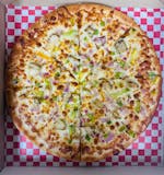 House marinara sauce, Pepperoni, Bacon, Pineapple, Cheddar cheese & Mozzarella cheese.