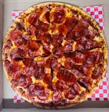 House marinara sauce, Pepperoni, Italian sausage, Canadian bacon, Bacon, Hamburger & Mozzarella cheese